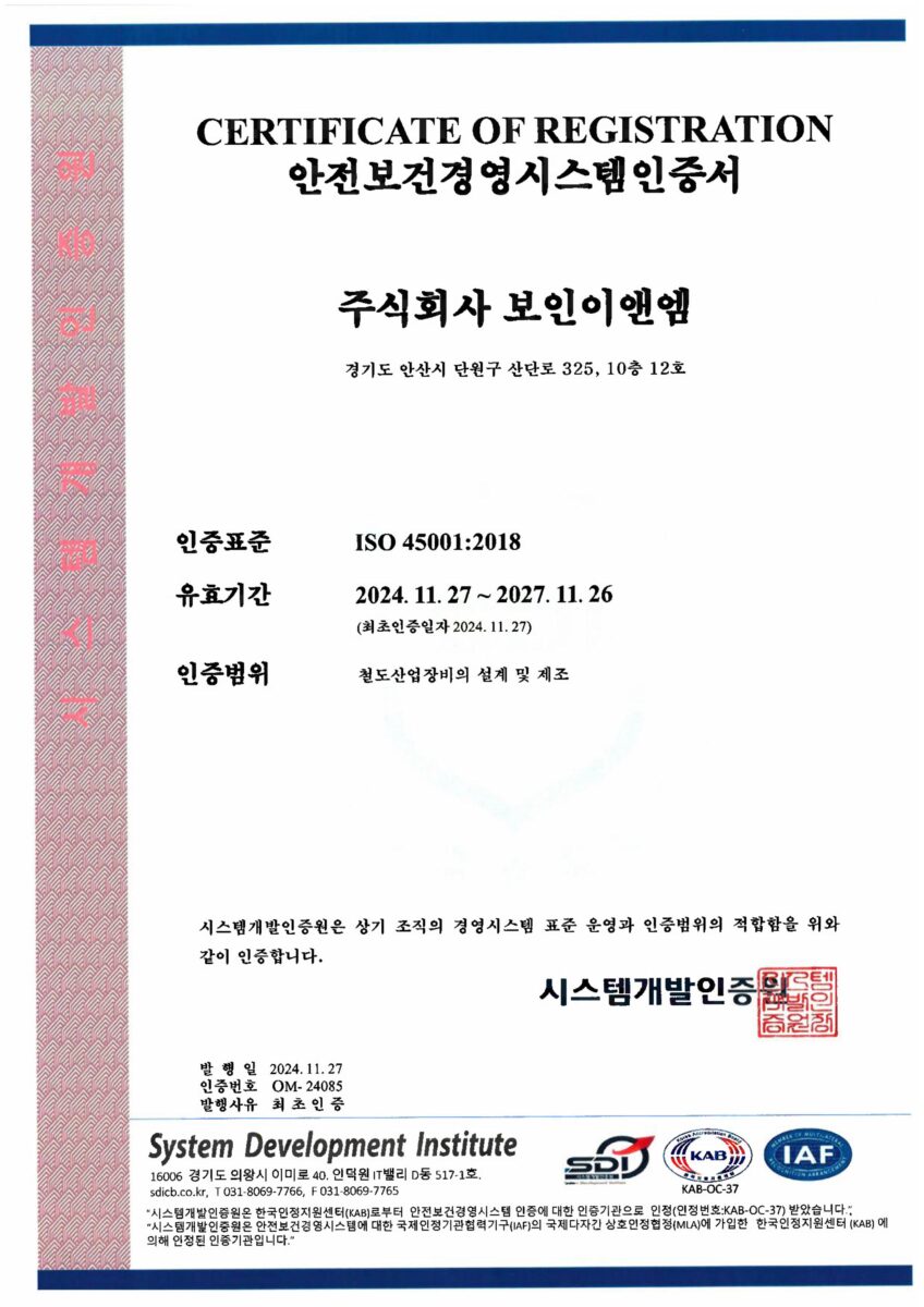 ISO45001 인증 획득